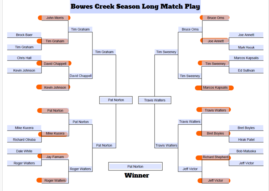 Please find the list of tournament events and descriptions below for the current season. Please contact the Bowes Creek Country Club Golf Proshop to register for these tournaments or click on each tournament button to sign up online.